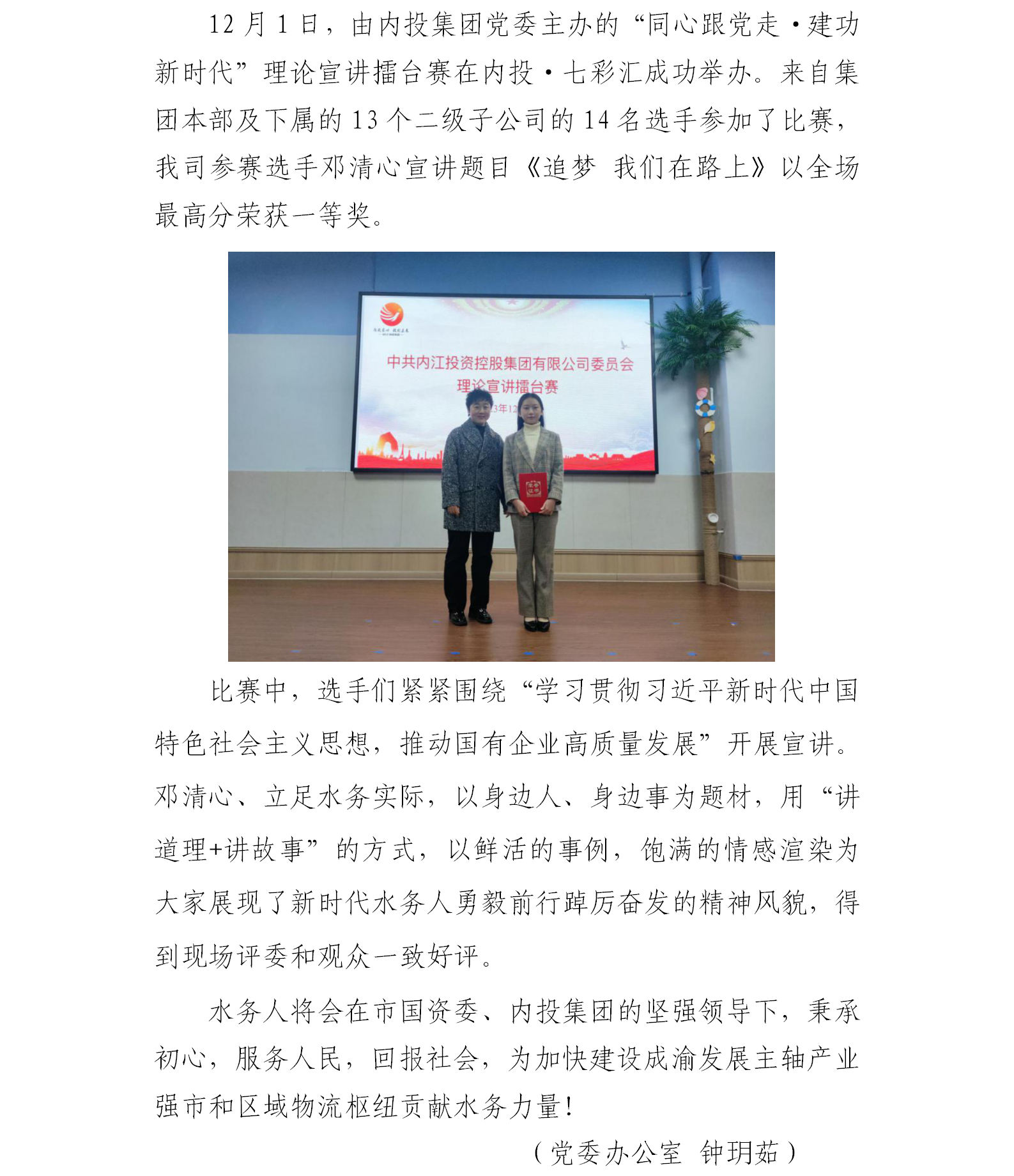 砥礪奮進水務人,同心共筑新時代——水務公司榮獲內投集團理論演講擂臺賽一等獎