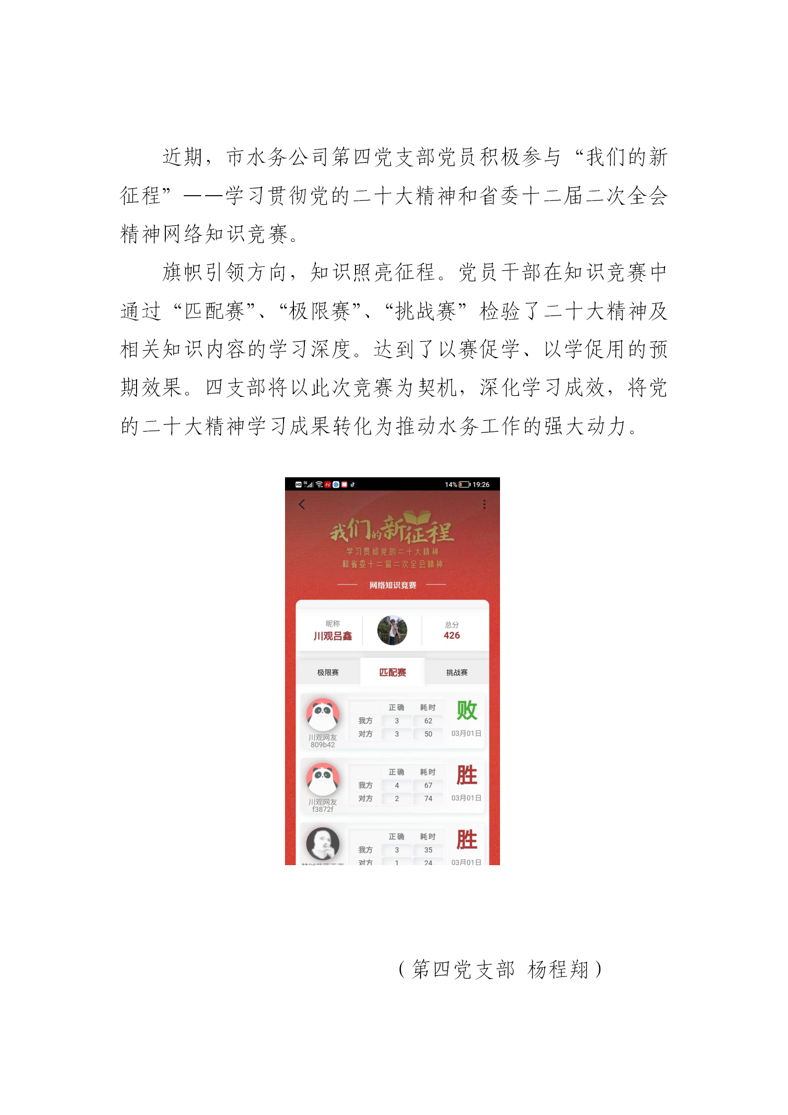 四支部積極參與“我們的新征程” 網絡知識競賽活動