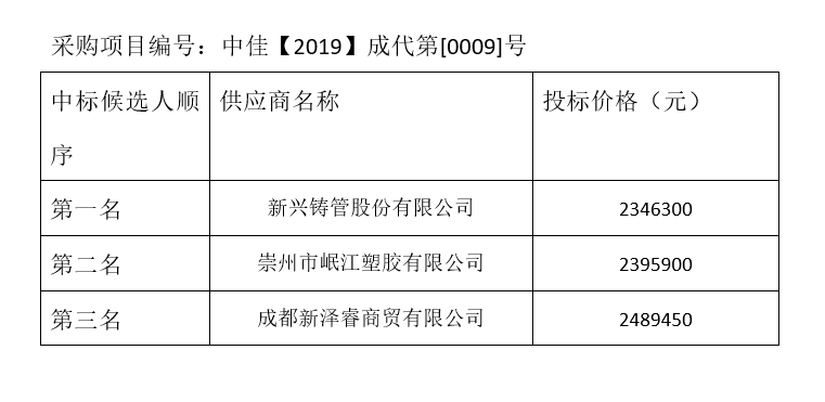 內(nèi)江市水務(wù)有限責(zé)任公司球墨鑄鐵管管材及管件采購項目評標(biāo)結(jié)果公示