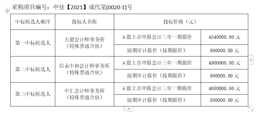 內江市水務有限責任有限公司首次公開發行A股上市會計師事務所選聘項目(第二次)評標結果公示
