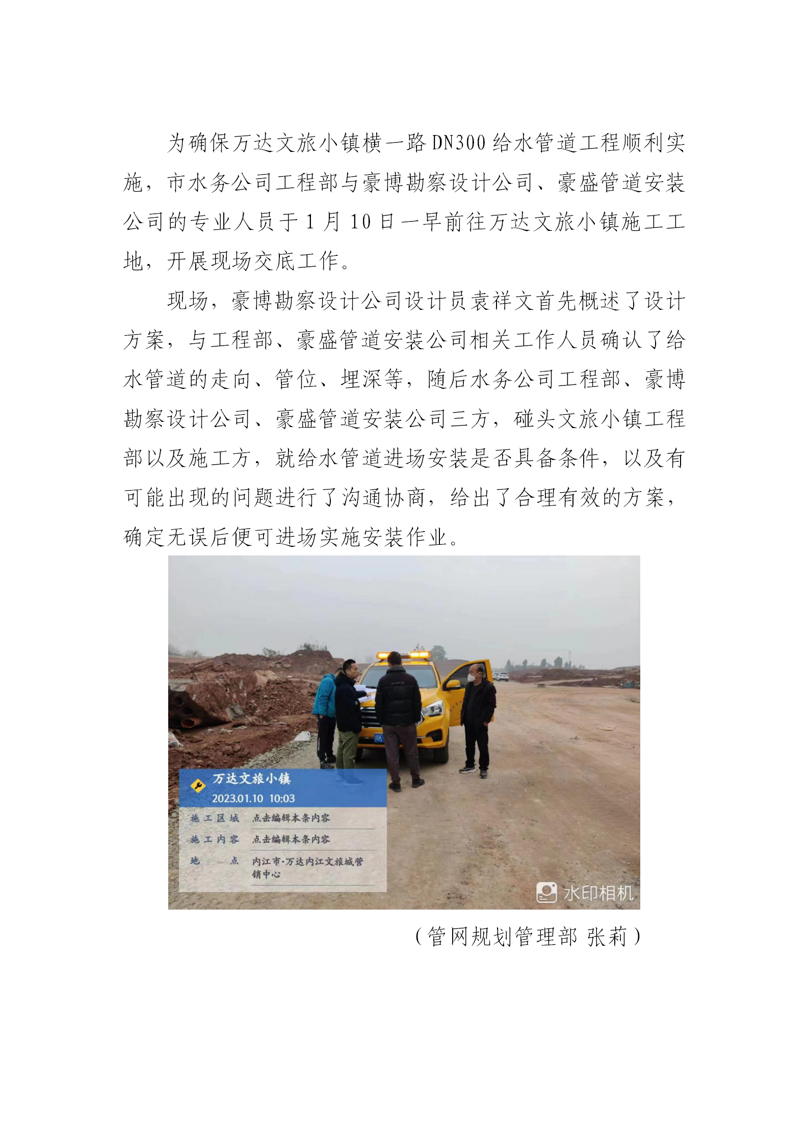 現場交底 確保給水管道工程順利實施