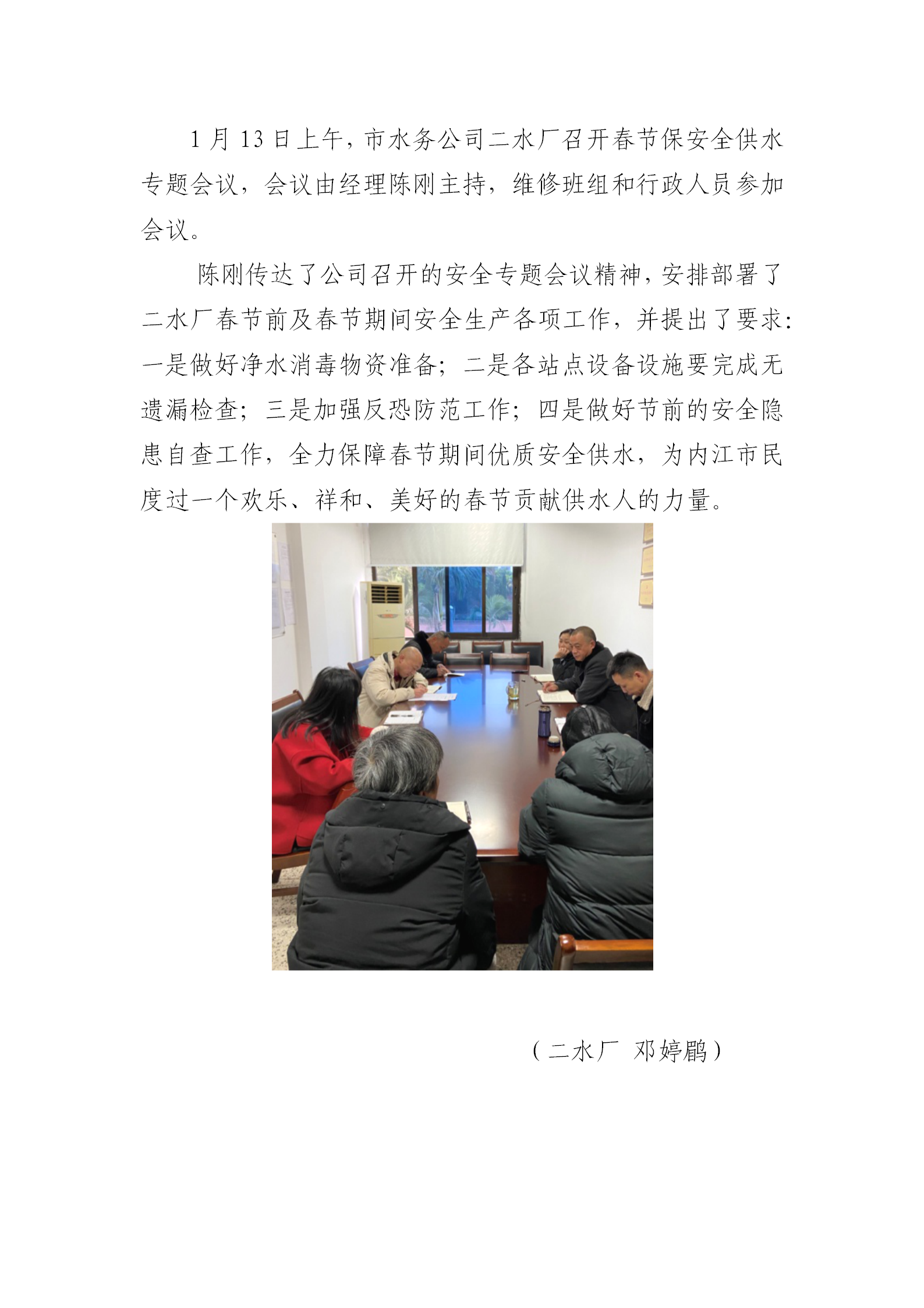 二水廠召開春節安全保供專題會