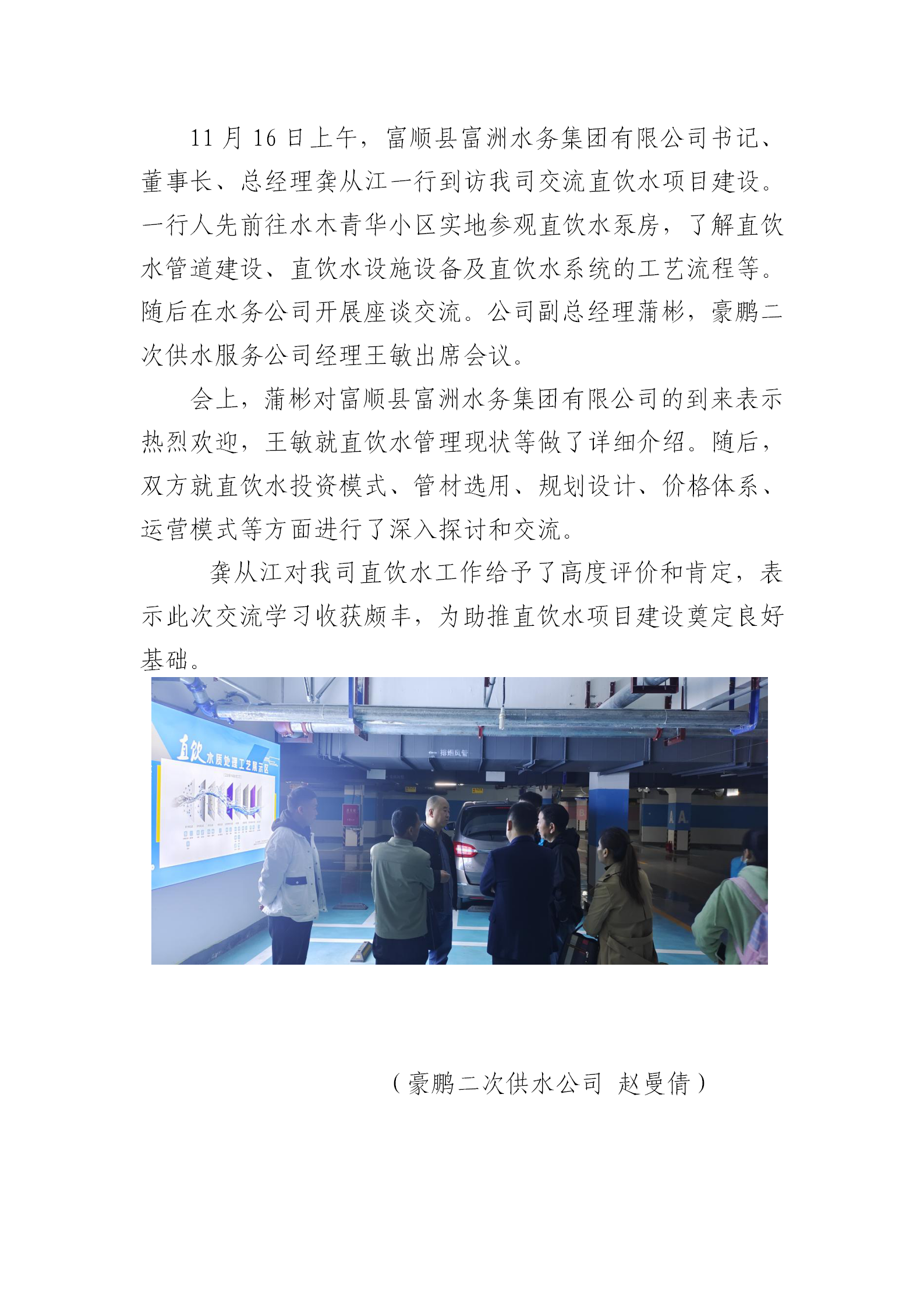 富順縣富洲水務集團有限公司到我司開展直飲水項目建設交流