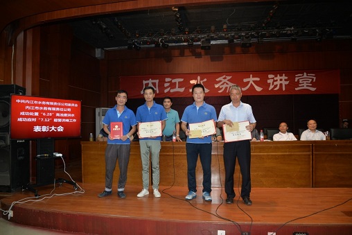 會(huì)上,大家觀(guān)看了成功處置“6·28”高濁度洪水和“7·12”超警戒洪峰專(zhuān)題片。公司黨委委員、副總經(jīng)理林冬宣讀了《關(guān)于表彰成功處置6·28高濁度洪水和“7·12”超警戒洪峰的決定》。公司領(lǐng)導(dǎo)班子成員分別為獲得先進(jìn)的集體和個(gè)人頒獎(jiǎng)。四位模范標(biāo)兵分享了他們?cè)趦纱螕岆U(xiǎn)救災(zāi)工作中的親身經(jīng)歷和思想感悟。在他們的發(fā)言中,我們都能尋找到一個(gè)共同點(diǎn),他們都以身為一名水務(wù)人關(guān)鍵時(shí)刻勇于擔(dān)當(dāng)而驕傲。